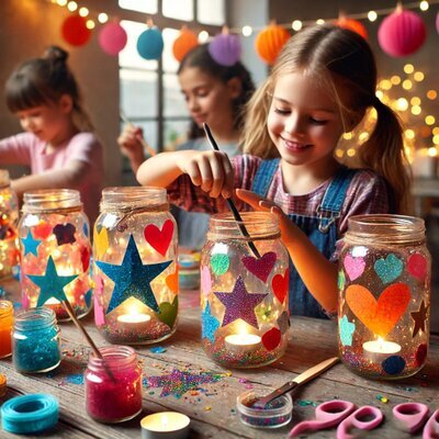 Ein farbenfrohes Windlicht, das die Kinder selbst gestaltet haben! Es ist perfekt als Geschenk oder Dekoration für das Kinderzimmer.